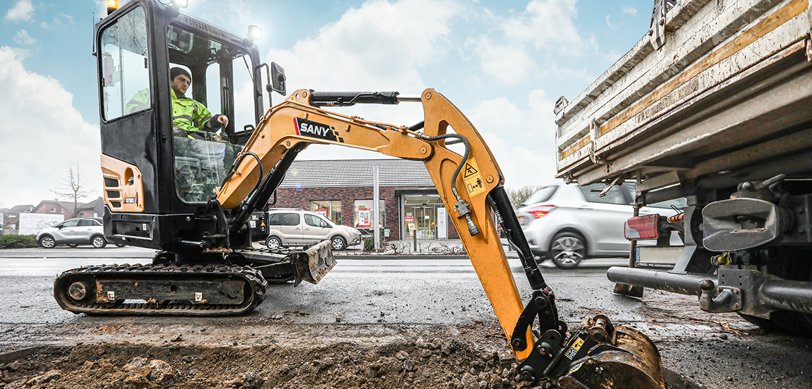 Die extrem einfache Handhabung und die flexible, präzise Arbeitsweise machen die Minibagger bei jedem Einsatz zu einem hochproduktiven Werkzeug. Als Leichtgewichte mit compakten Maßen lassen sie sich zudem schnell und uncompliziert zum Einsatzort transportieren.